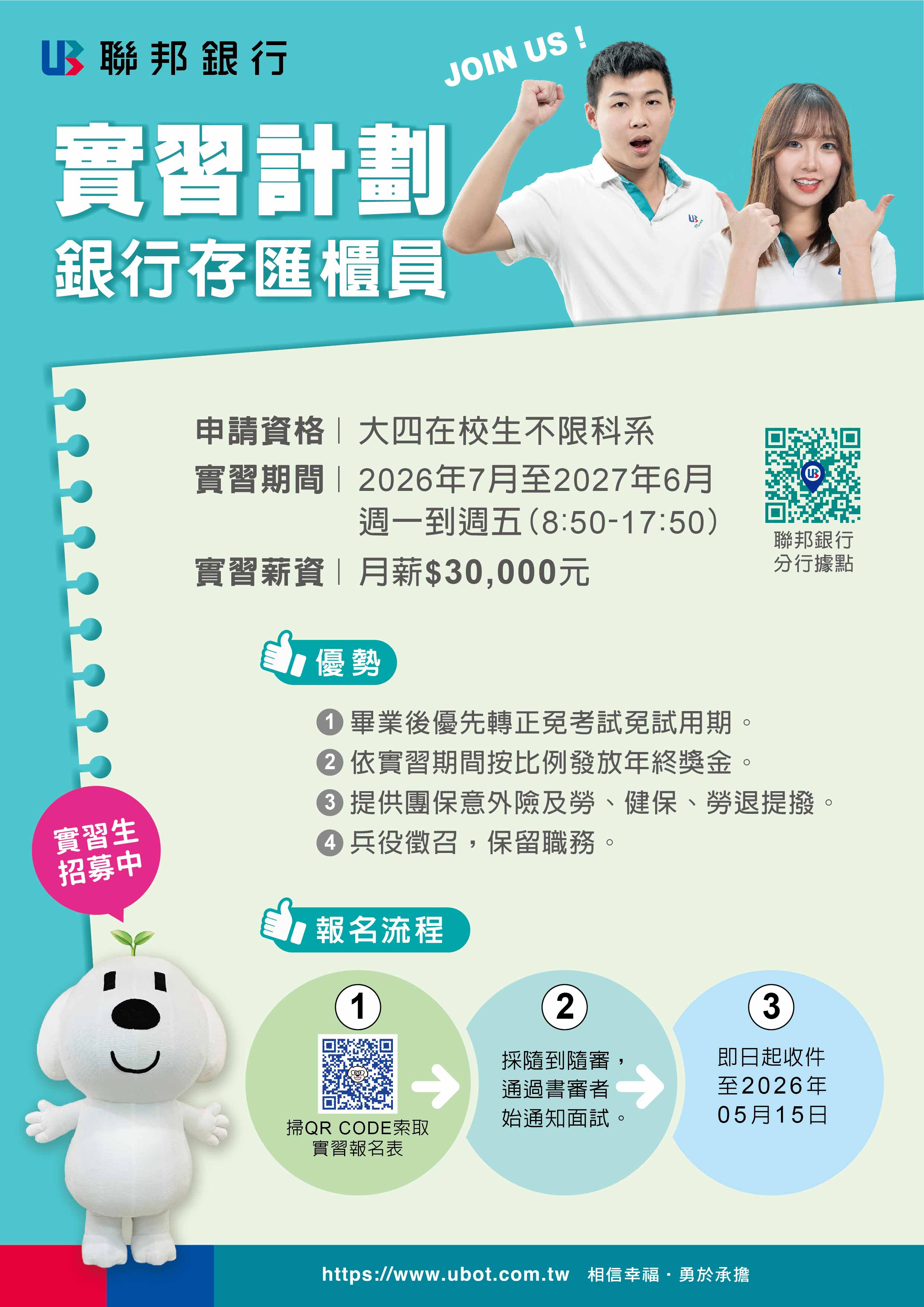 聯邦商業銀行2026年實習計畫資訊如附件